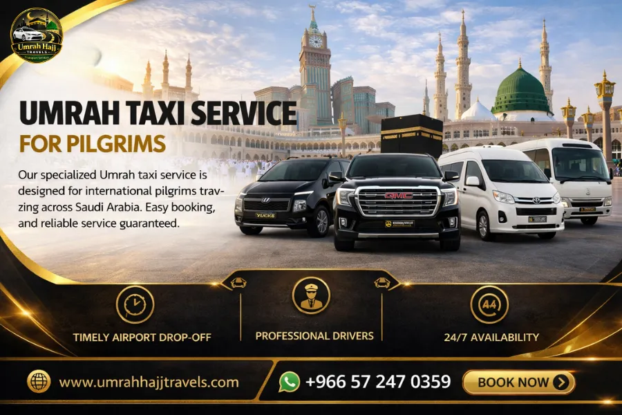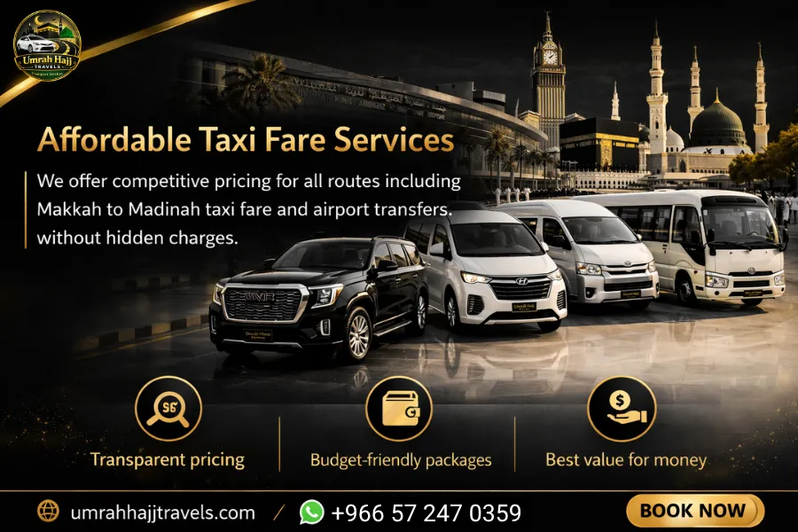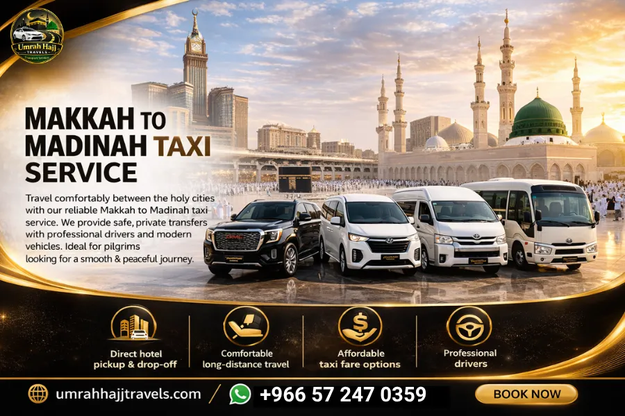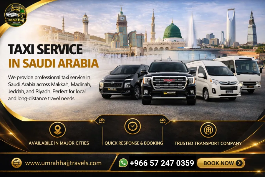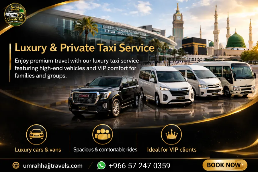 At Umrah Hajj Travels, we provide reliable, comfortable, and affordable taxi services across Saudi Arabia, specially designed for Hajj and Umrah pilgrims. Whether you need an airport transfer, intercity travel, or a private taxi, our professional drivers ensure a smooth and stress-free journey.