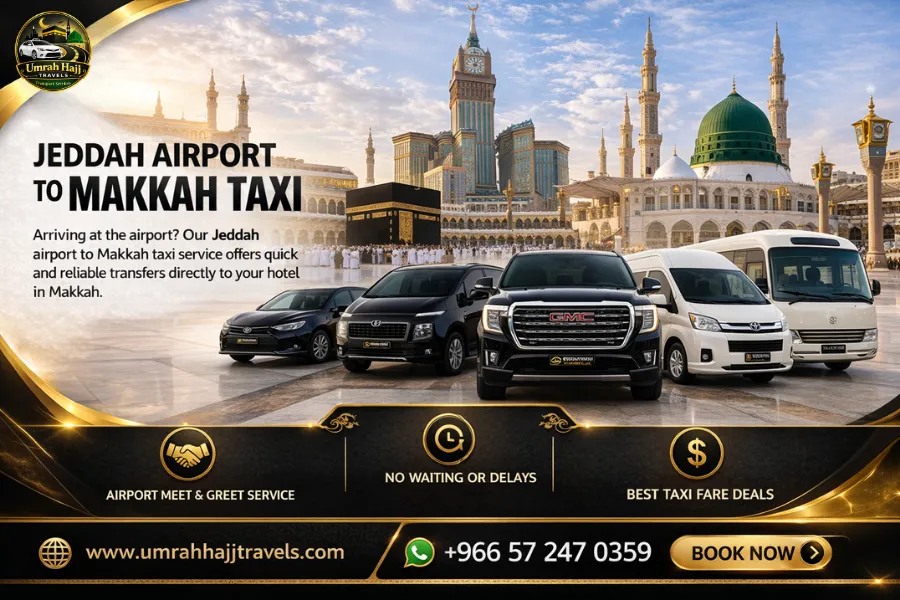 Arriving at the airport? Our Jeddah airport to Makkah taxi service offers quick and reliable transfers directly to your hotel in Makkah.