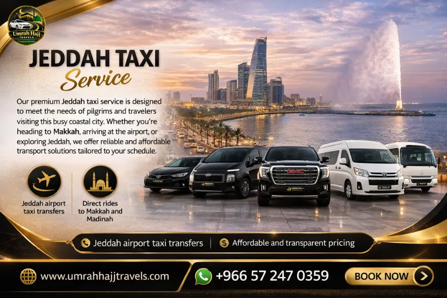 Our premium Jeddah taxi service is designed to meet the needs of pilgrims and travelers visiting this busy coastal city. Whether you’re heading to Makkah, arriving at the airport, or exploring Jeddah, we offer reliable and affordable transport solutions tailored to your schedule.