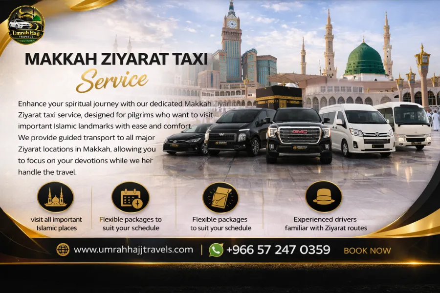 Enhance your spiritual journey with our dedicated Makkah Ziyarat taxi service, designed for pilgrims who want to visit important Islamic landmarks with ease and comfort. We provide guided transport to all major Ziyarat locations in Makkah, allowing you to focus on your عبادات while we handle the travel.